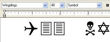 Acuma Schimba dimensiunea caracterului cu cea de 48 si schimba caracterul literelor in cel WINGDINGS.